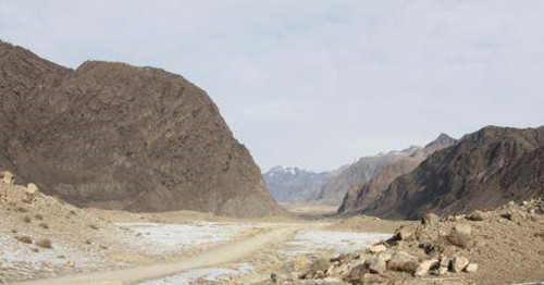 遠(yuǎn)遠(yuǎn)看去,破城子關(guān)隘就像一個U型口,被大自然的鬼斧神工塑造于山谷之間,有一夫當(dāng)關(guān),萬夫莫開之勢。木扎提河就是從山谷里一瀉而下,流向拜城縣境內(nèi),并形成下游的渭干河。以木扎提河為界,河?xùn)|、河西分別為拜城縣和溫宿縣的地域。
