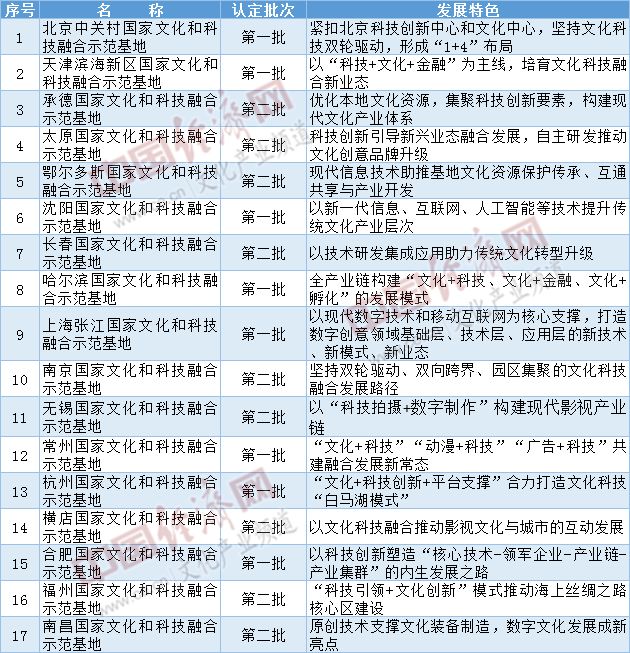 附:前兩批34家國(guó)家文化和科技融合示范基地名單及發(fā)展特色